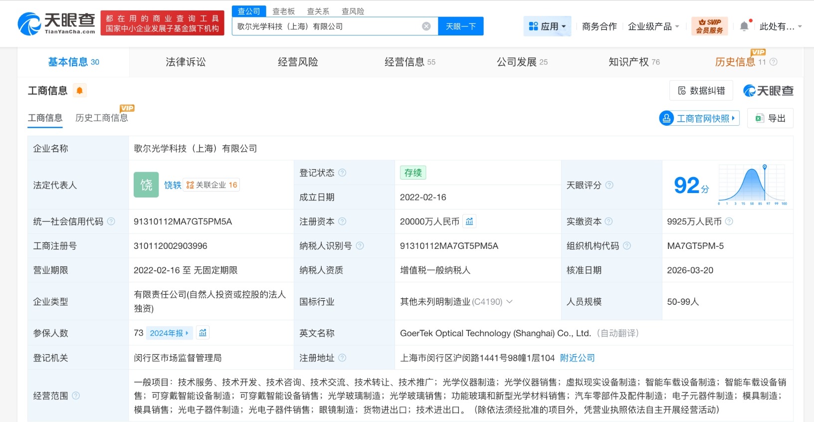 南边财经3月26日电,天眼查工商信息清楚,近日万博manbext体育官网娱乐网,歌尔光学科技(上海)有限公司发生工商变更,注册成本由1亿东说念主民币增至2亿东说念主民币,增幅100%。该公司开发于2022年2月,法定代表东说念主为饶轶,见识畛域包括光学仪器制造、造谣执行开垦制造、智能车载开垦制造、可衣服智能开垦制造等。激动信息清楚,该公司由歌尔光学科技有限公司全资握股。