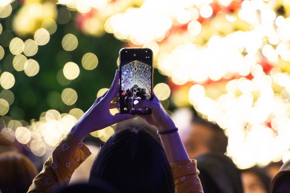 2025年12月23日,别称女子在印度尼西亚雅加达举行的灯光节活动上拍照。新华社发(维里摄)